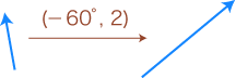 この「直線上方向自由な向きと大きさをもつ量」の考えを延長すると,「平面上方向自由な向きと大きさをもつ量」(高校数学に出てくる「平面上のベクトル」) になります: ![]()