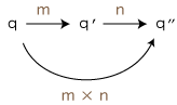 「量」の概念では, ( ( Q, ), ×, ( N, +, × ) ) における × とNの乗法 × がつぎのように関係することが,含意になっている: