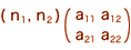 ( n1 × a11 + n2 × a21,  n1 × a12 + n2 × a22, )