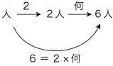 2. 「6人が2人ずつ車に乗るとき,車は何台要る?」