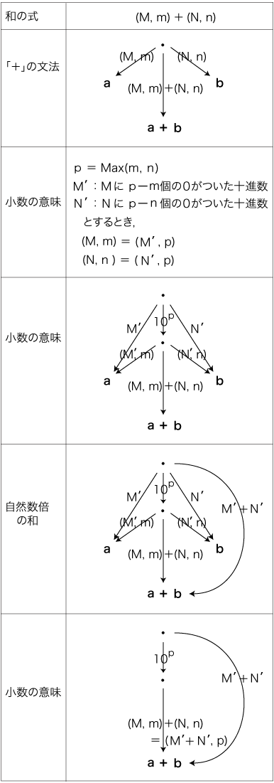 そして,「(M, m) × (N, n) = (M′+N′, p )」は ,確かにわれわれの知る「小数の和の計算」である。