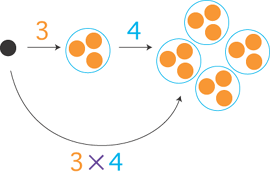 一般に,数の「積」(記号「×」) は,「倍の倍」の表現に