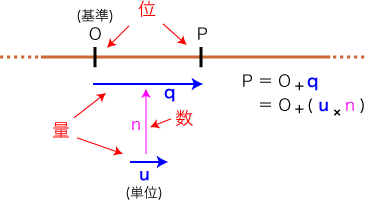 また一方,自然数 → 正負の数 (整数, 有理数) → 実数 → 複素数 → 四元数の流れでは,正負の数のところから,「位 (位置)」の概念が立つようになります。( 「位」表現──存在の3態:位・量・数 )