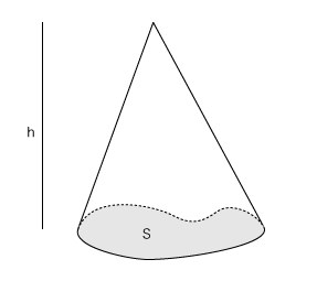 「底面積S,高さhの錐の体積は,S × h ÷ 3 で求められる。」