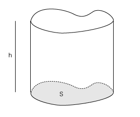 柱の体積は,この区分求積の極限として,S×h である。