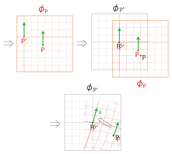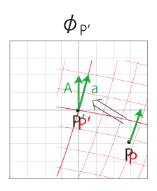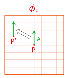 \(\phi_P\) の上で,ベクトル \({\bf A} \) をつぎのように平行移動する: