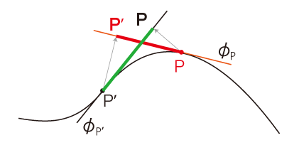 ──例えば,\(P,\,P'\) 間の距離の場合だと: