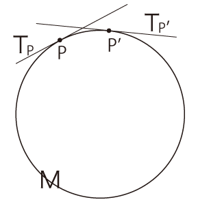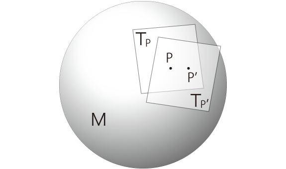 「現空間」の主題化は,『相対性理論』を意識している。 実際,主題化したいものは,『相対性理論』がいう「空間の曲がり」である。 「空間の曲がり」を主題化する数学は,「多様体」である。 そこで,われわれの空間を「多様体」に見なそうとする。 さて,この「見なす」は,どんなふうにすることか? <わかったつもり>は,低次元の喩えに寄り掛かることで得ている: