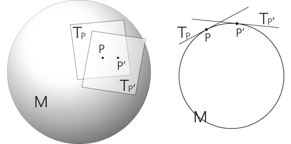 そもそも,接ベクトル空間は,土台の空間からはみ出る存在になる。