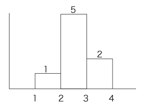 つぎのヒストグラムに示される度数分布に対し,これの分散σ2 を計算する。