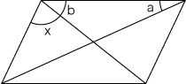 つぎの平行四辺形で,a=15゜, b=30゜のときの x の角度を求めよ:
