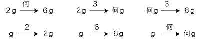 問題 2gの何倍が6gか? 2gの3倍は何gか? 何gの3倍が6gか?