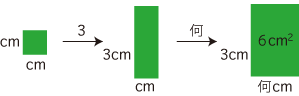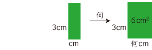 Up 面積が6cm2,タテの長さ3cm の長方形のヨコの長さは?