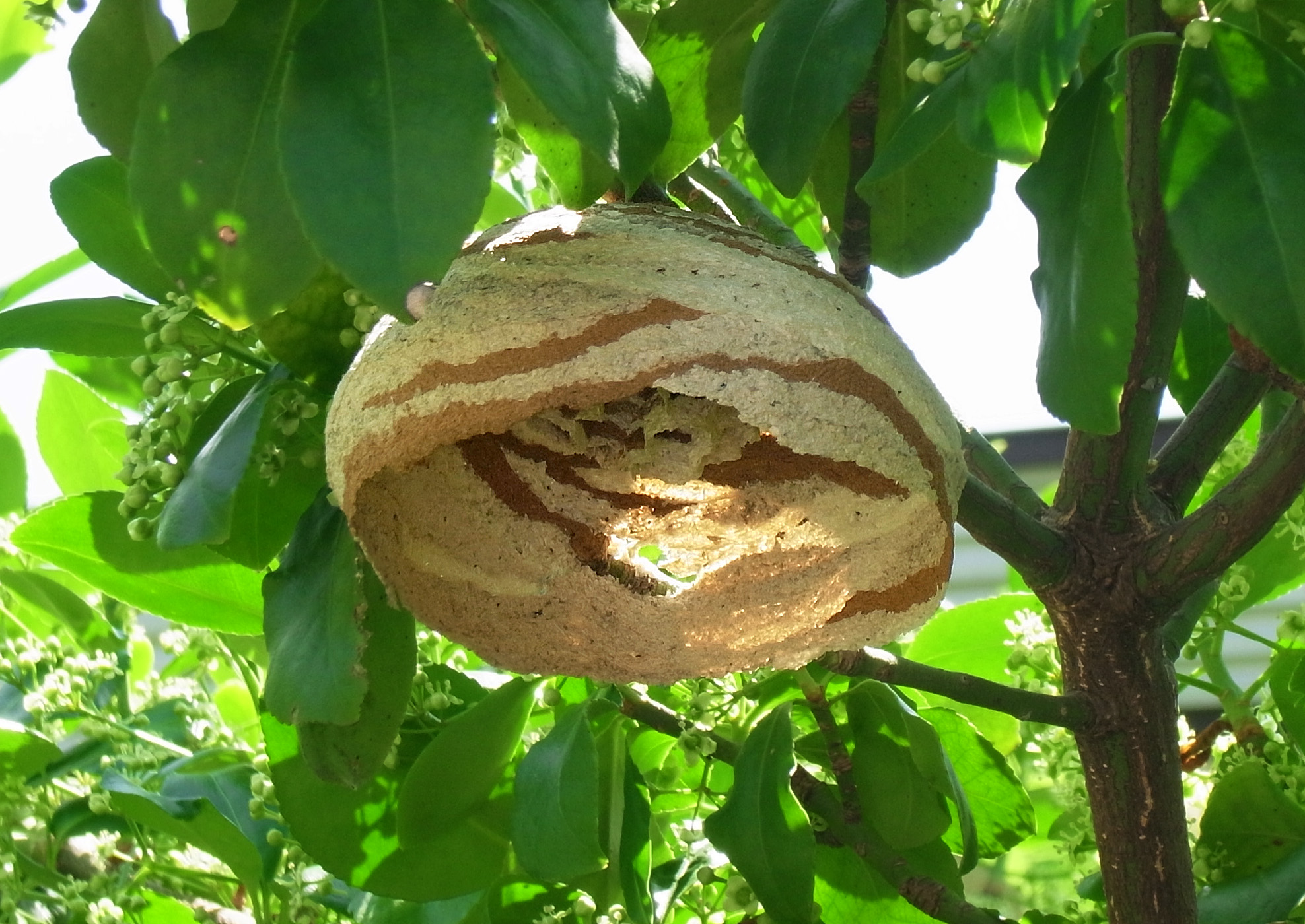しかし通りに面したところに巣がつくられているので,女王蜂には気の毒だが,この度は巣を採取することに。