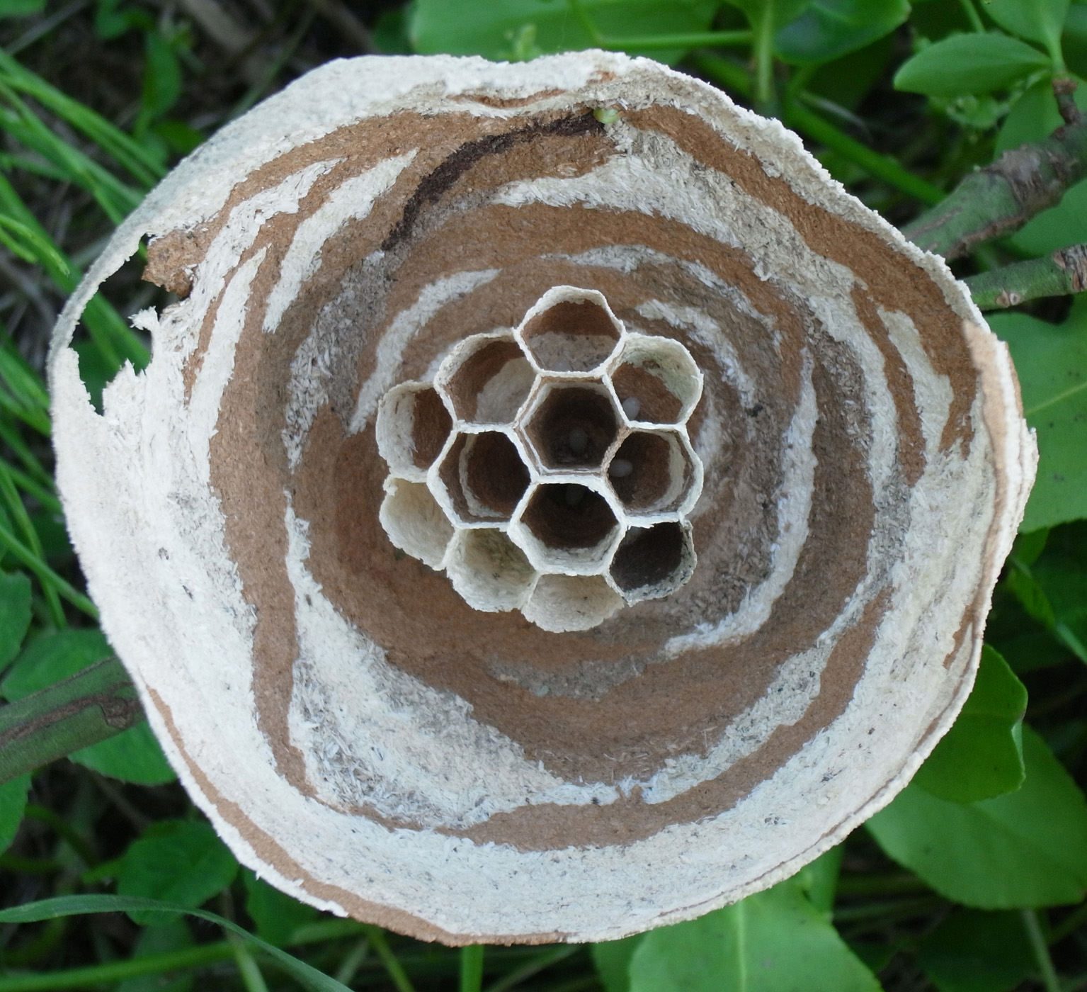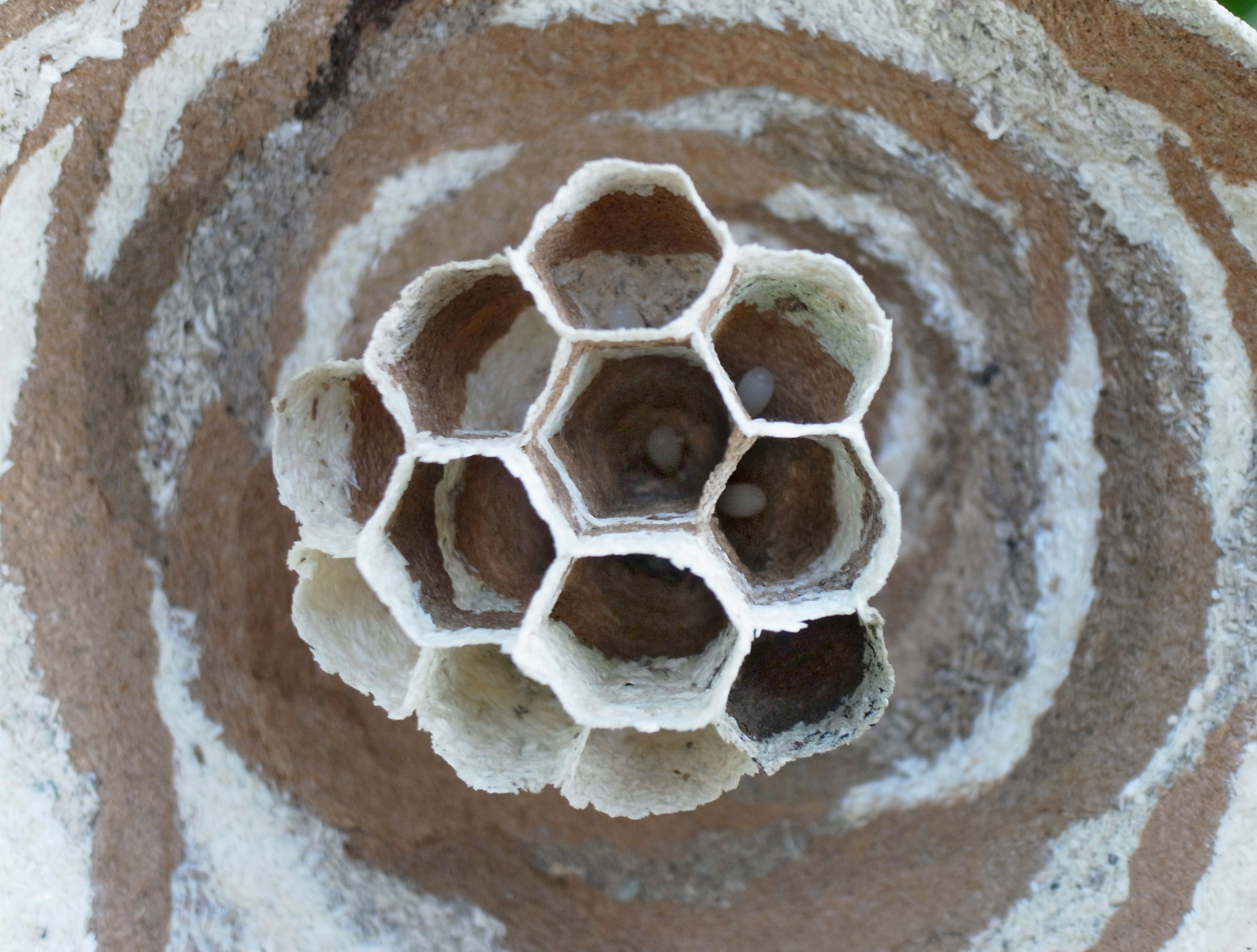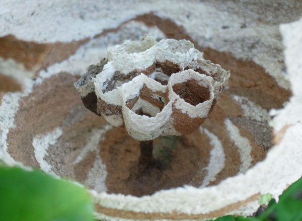 まだ女王蜂独りでつくっている段階の巣。