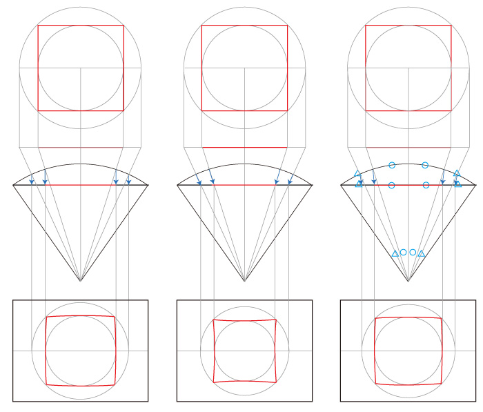 よって無限遠撮影した景色は,地面に垂直な線が,撮影画像の中の天頂を向くことで,傾く。