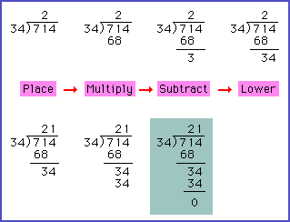 Becase 34 71, the quotient is a 2 place number.