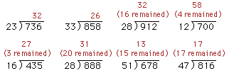 [1] Exercise of the calculation of (3 place number) (2 place number) = (2 place number)