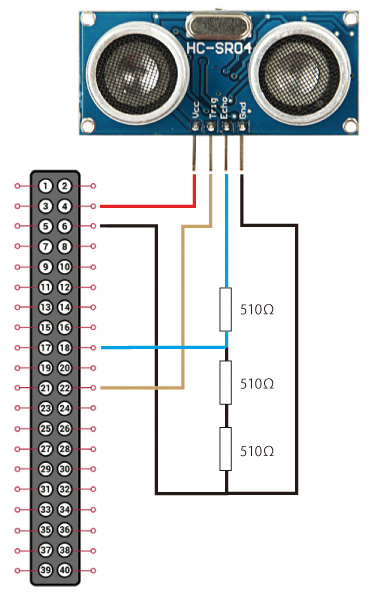 Trig 用 GPIOピンは GPIO.OUTピンになるので,ここでは GPIO 25 (物理番号22) を使うことにする。