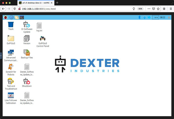 GoPiGo3 Control Panel を起動すると,操作パネルが現れる: