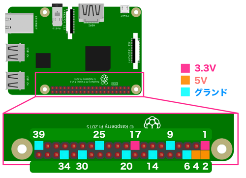 回路の<グラウンドに流れる電流>は,Raspberry Pi のグラウンド端子にも流れ込む。