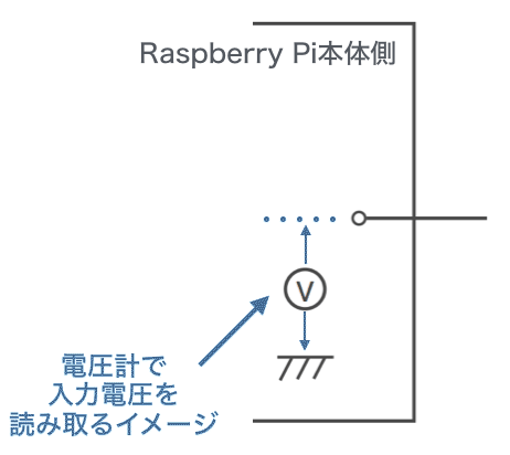 GPIOピンは電圧値そのものを読み取ることはできず、0Vか3.3Vかのどちらかを読み取ることになる。