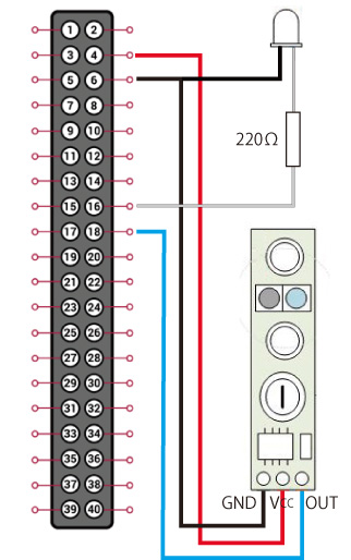 #!/usr/bin/env python import RPi.GPIO as GPIO IRTrackingPin = 18 OutLedPin = 16 def setup(): # Set the GPIO pins as numbering GPIO.setmode(GPIO.BOARD) # Set the IRTrackingPin mode is input, and (Not detected→) ON→ LOW GPIO.setup(IRTrackingPin, GPIO.IN, pull_up_down=GPIO.PUD_UP) # Set the OutLedPin's mode is output GPIO.setup(OutLedPin, GPIO.OUT) # Set the OutLedPin high(+3.3V) to off led GPIO.output(OutLedPin, GPIO.LOW) def loop(): while True: if GPIO.input(IRTrackingPin) == GPIO.HIGH: GPIO.output(OutLedPin, GPIO.HIGH) def destroy(): # Set the OutLedPin turn HIGH GPIO.output(OutLedPin, GPIO.HIGH) # Release resource GPIO.cleanup() # The Program will start from here if __name__ == '__main__': setup() try: loop() # When control c is pressed child program destroy() will be executed. except KeyboardInterrupt: destroy()