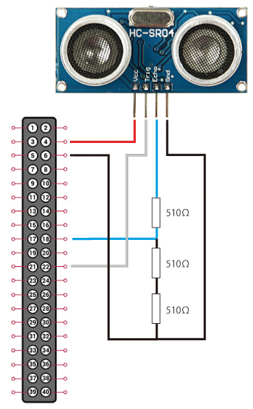 よって,Trig 用に GPIO 25 (物理番号22) を使う: