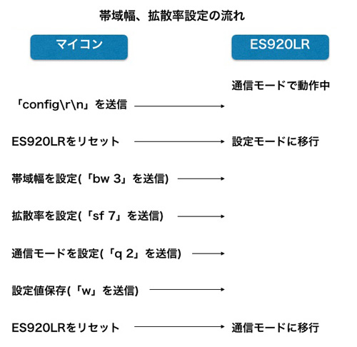 ESP8266やRaspberry Pi3からES920LRの帯域幅と拡散率を設定/変更する流れは次のようになります。