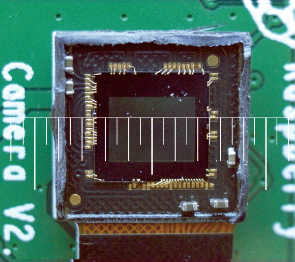 というわけで,Bayerフィルタを擦り取る作業は,イメージセンサーの中央から縁に向かって徐々に進め,縁近くは触らないで済ますことにする。