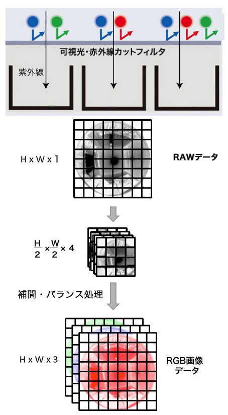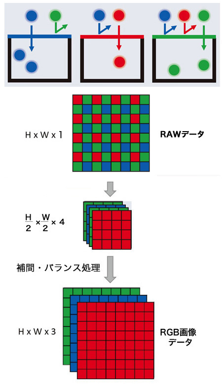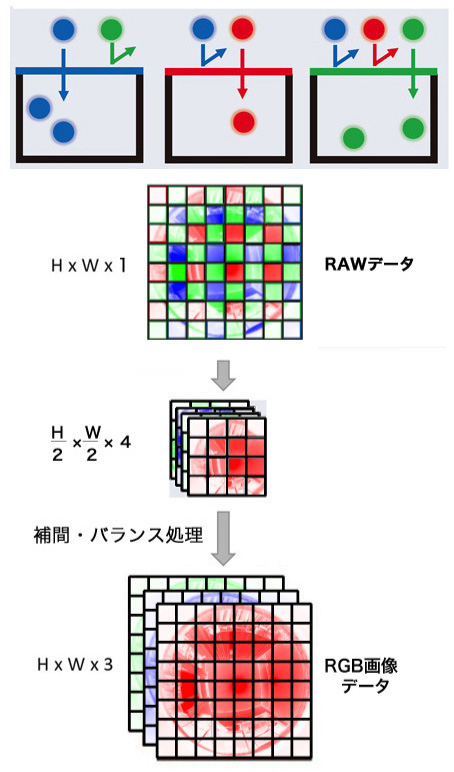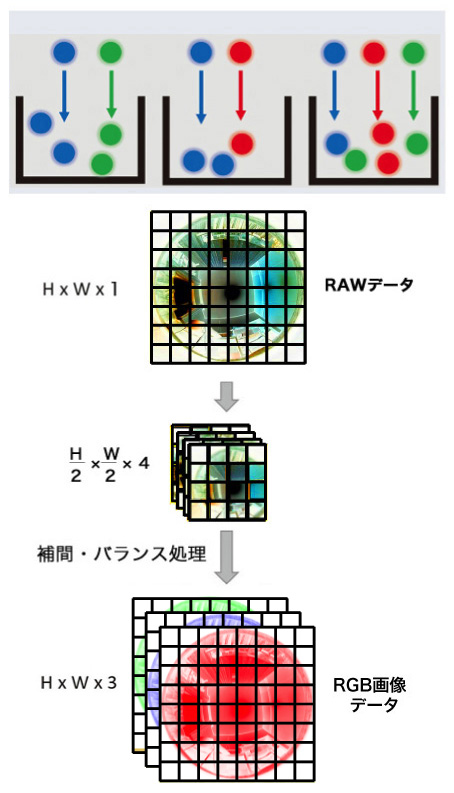 de-Bayer カメラの画像ファイル生成は,つぎのようになる: