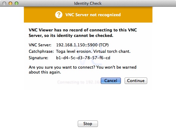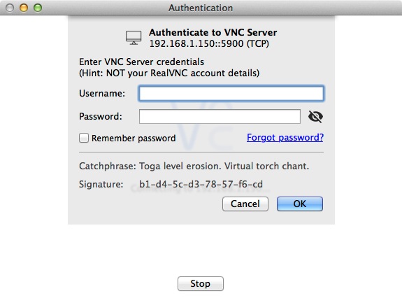 アイコンのダブルクリックで,VNC Viewer.app