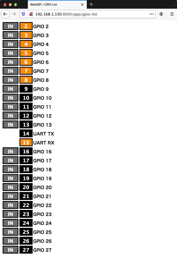 $ ps -ef | grep webiopi root 1273 1 2 19:02 ? 00:00:00 /usr/bin/python3 -m webiopi -l /var/log/webiopi -c /etc/webiopi/config