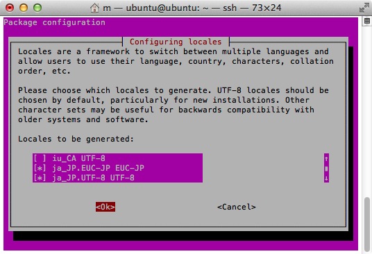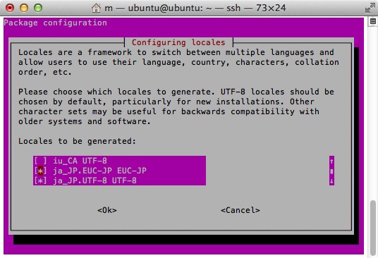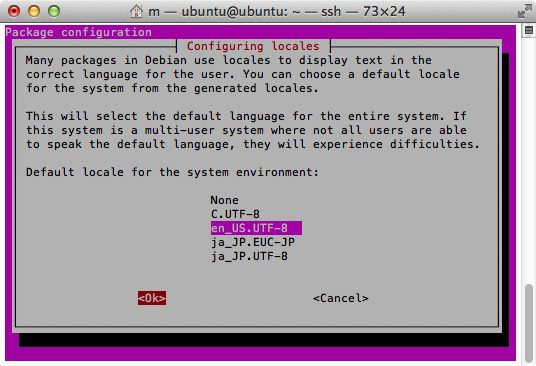 Generating locales (this might take a while)... en_US.UTF-8... done ja_JP.EUC-JP... done ja_JP.UTF-8... done Generation complete