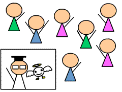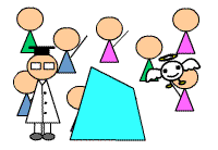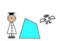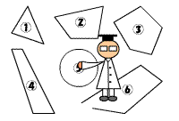 「その通り!四角形は4本の直線でかこまれているんだったな。」 「テンテン、ご苦労じゃった。」 「みんな良くわかったことじゃろう。」 |