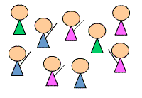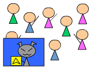 「ここにたくさんの形が書かれているが、その中から四角形だけを見つけてみてくれ。」 テ「うーん・・・」 |