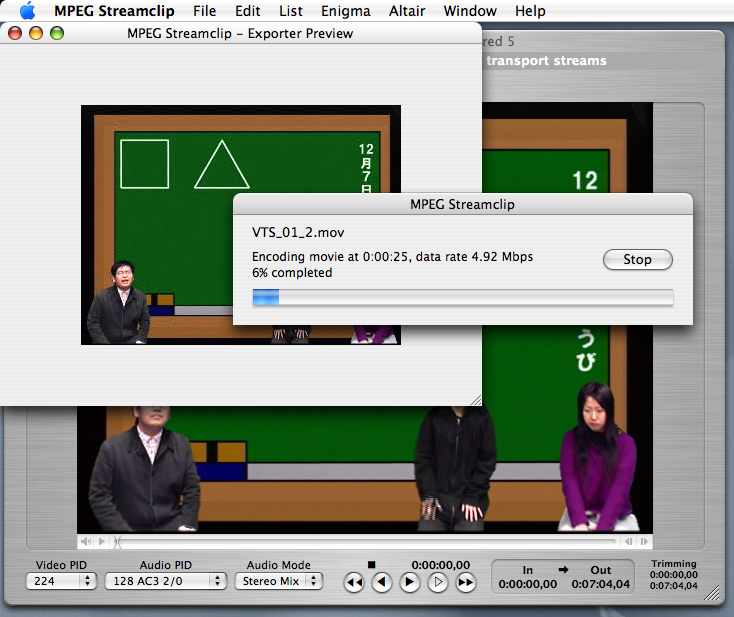 - これで,放送ビデオが QuickTime 形式で得られた。