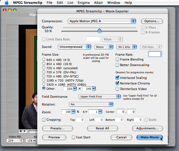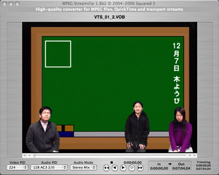 VOBファイルを QuickTime に変換するのに,MPEG Streamclip を使うことにする。