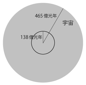 - 宇宙は光速より高速で拡大している。──いま,地球から「宇宙の果て」までが 465億光年。