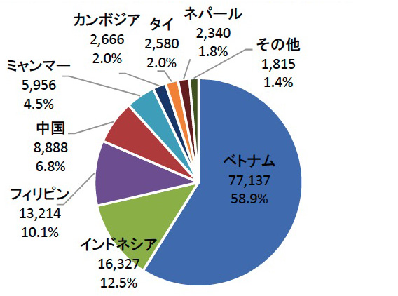 2022年12月末 特定技能在留外国人数:130,923 人
