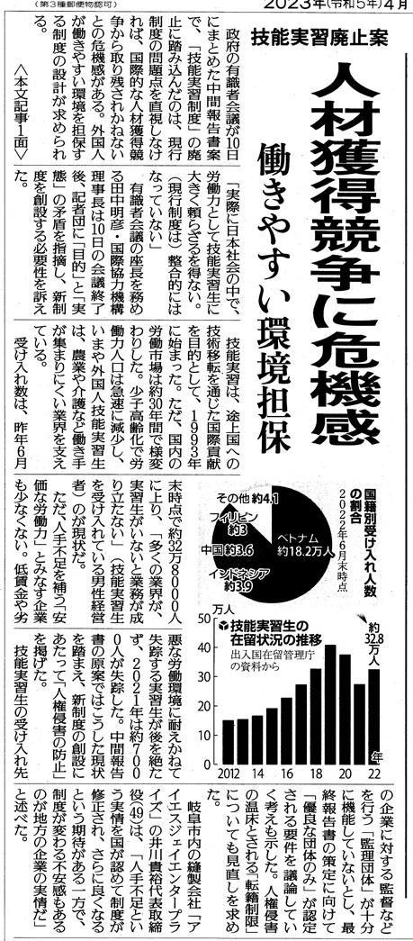 「人手不足の深刻化」を廃止の理由にしているが,「技能実習」はもともとその運用の欺瞞性により,いつまでも続けられるものではない。