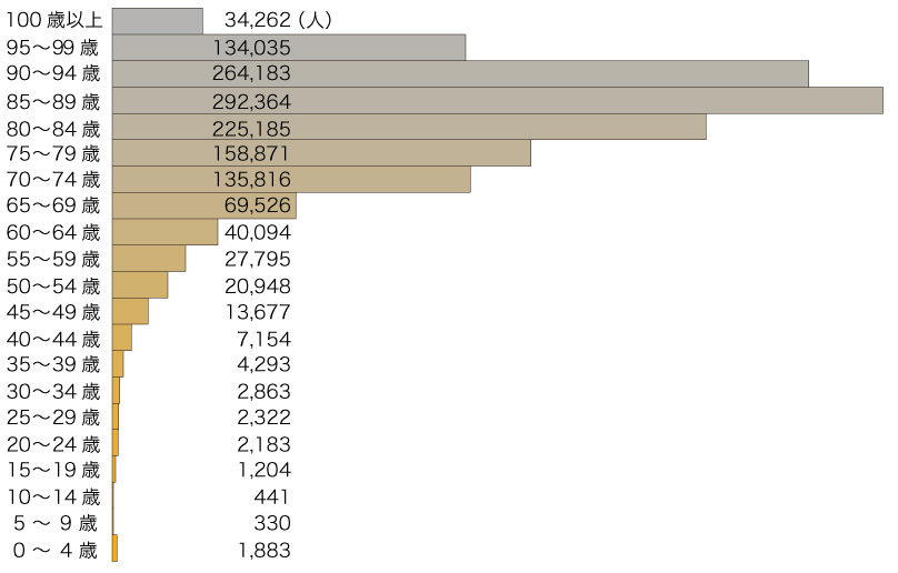 厚労省『令和3年 人口動態統計』, 中巻 死亡,第8表「死亡数, 年齢 (5歳階級)・性・死亡の場所別」
