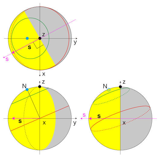 地球の中心を通り太陽に向く軸を,s軸とする。