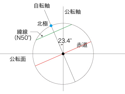 このことの効果として,公転は,太陽光線の照射角度および日中時間の変化の一巡になる。