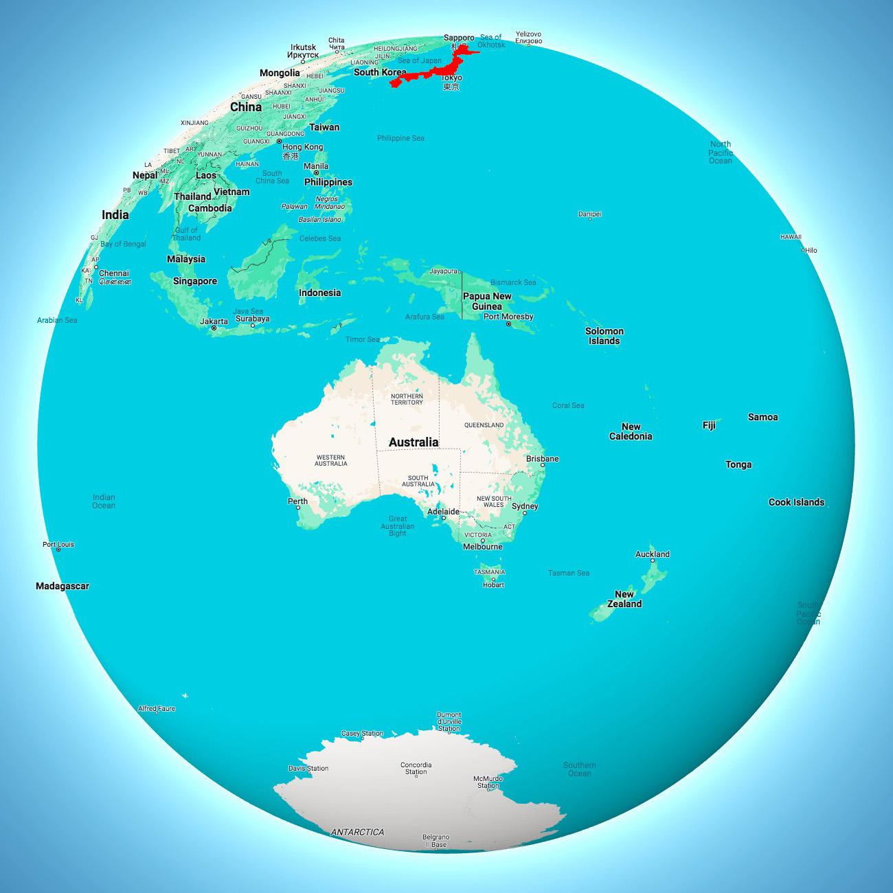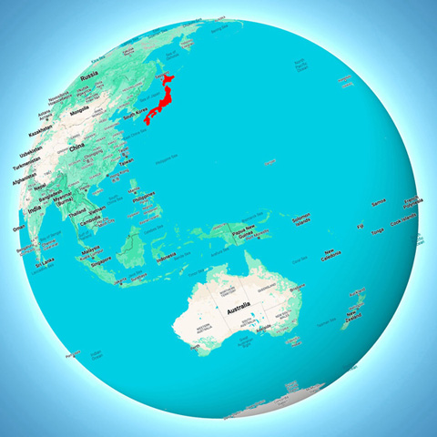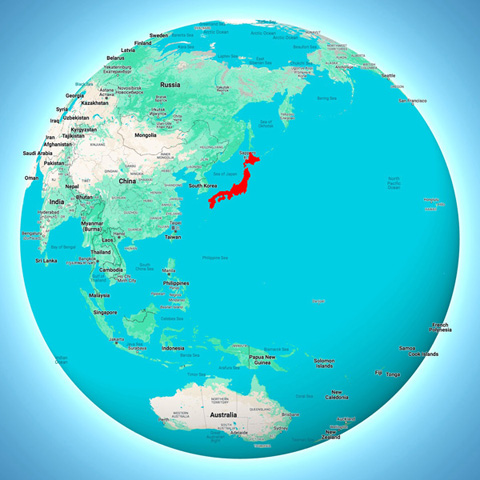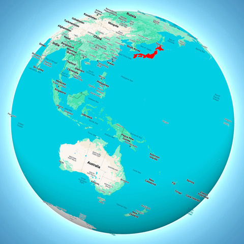 つぎは,<太陽から見た南中時の日本>の位置が,春分・夏至・秋分・冬至でどれほど違うかを示したもの: