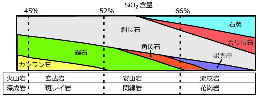 和田信一郎『土壌学』,5.2.1. 火成岩, pp.60,61. から引用: