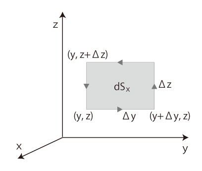 はじめに,\( dS_x \) が長方形の場合を考える: