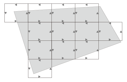 重なる辺で仕事が相殺されるので,つぎが成り立つ: