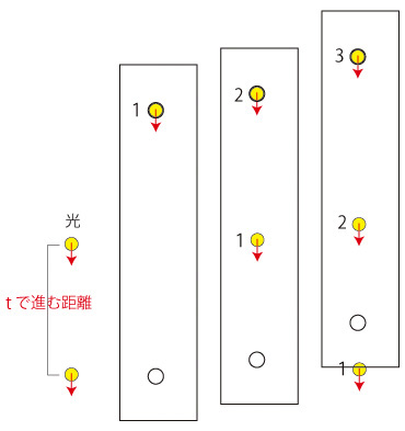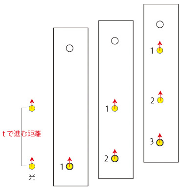 光1が時計1に届くまでの時間 > 光2が時計1に届くまでの時間
