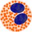 2分葉 エオジン親和性の橙黄色に染まる均質・粗大な顆粒 好中球より少し長い
